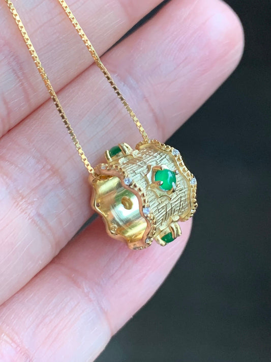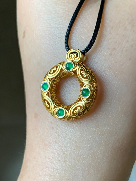 Natural Guatemalan Premium Vibrant Green Jadeite Ping An Kou Pendant S925 Silver Yellow Gold Finish w/ Chain 天然高冰危绿翡翠银镶平安扣吊坠套链
