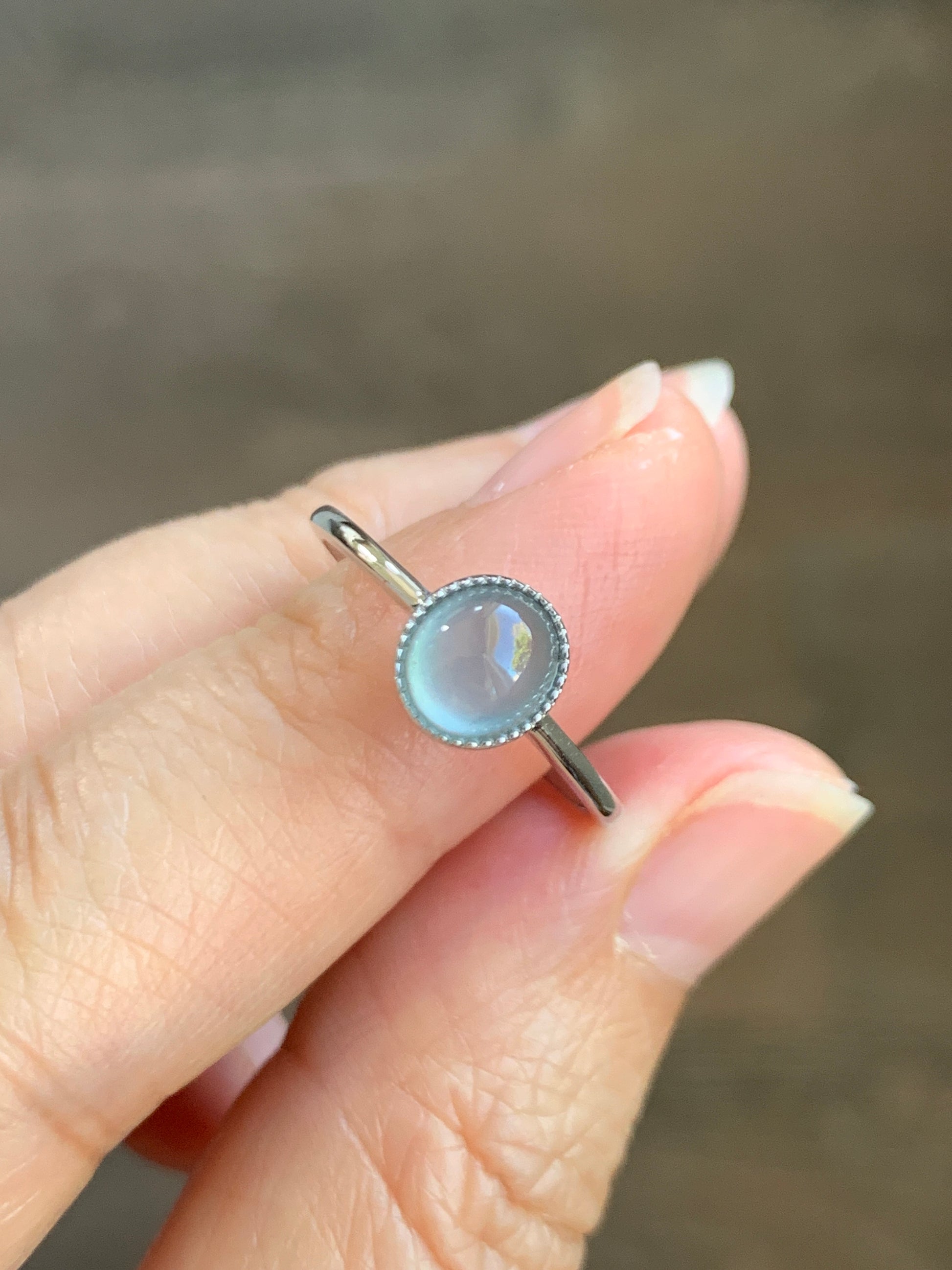 Certified Natural Guatemalan Premium Highly Translucent Icy Blue Jadeite Solitaire Ring 18K White Gold Size 7 天然冰危蓝水起光翡翠镶嵌戒指 1073